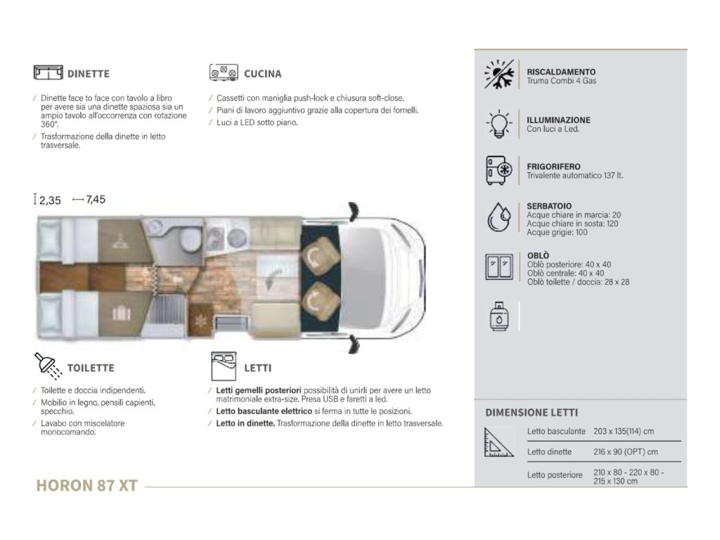 Dimensioni Lunghezza 745 cm - Altezza 285 cm - Larghezza 235 cm