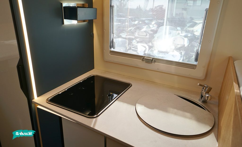- Bagno a volume variabile con parete lavabo ruotabile