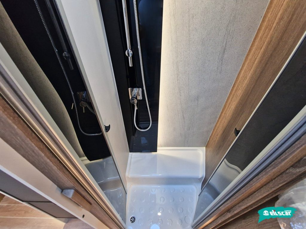 - Doccia con doppio scarico a pavimento