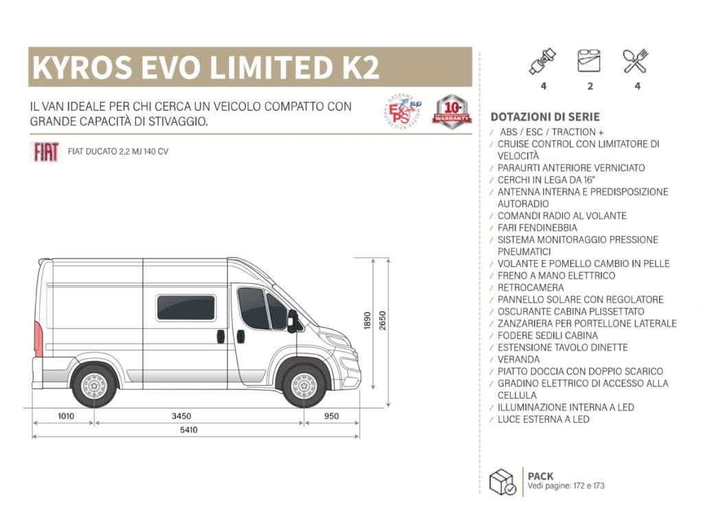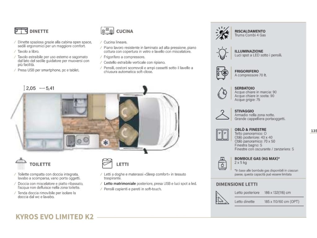 - posibilità di aggiunta letto dinette (185 x 110 cm)